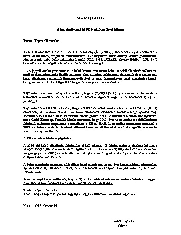 Előterjesztések 2013-10-29