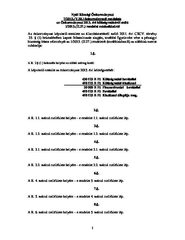 Előirányzat módosítás - rendelet