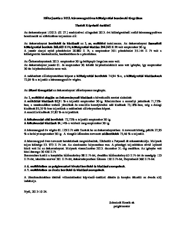 Háromnegyed éves beszámoló - előterjesztés