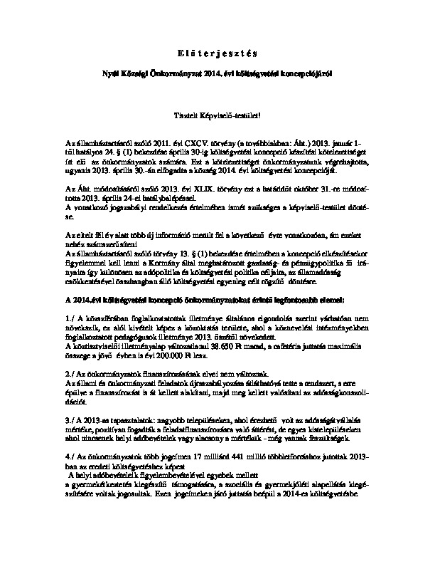 Költségvetési koncepció 2014