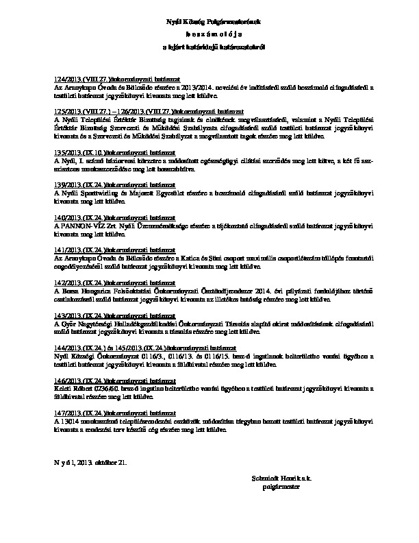 Lejárt határidejű határozatok 2013.10.29