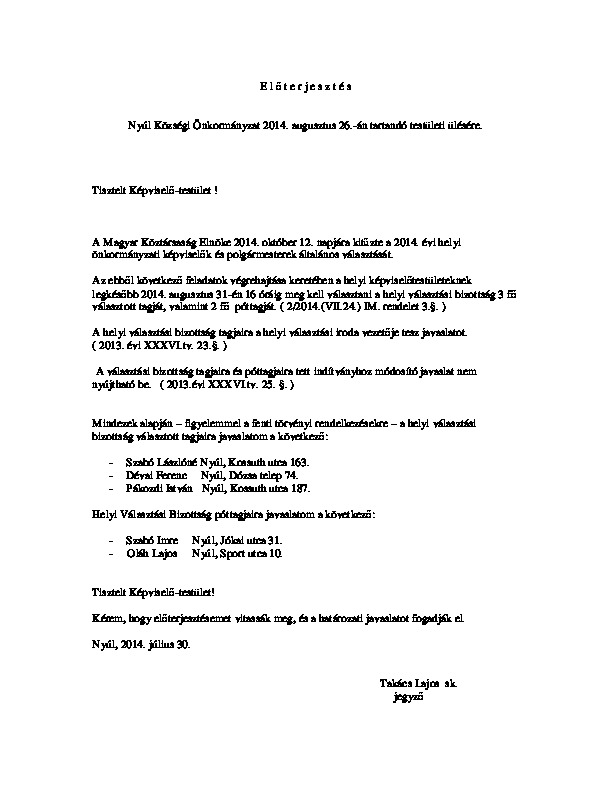 Előterjesztések 2014-08-26
