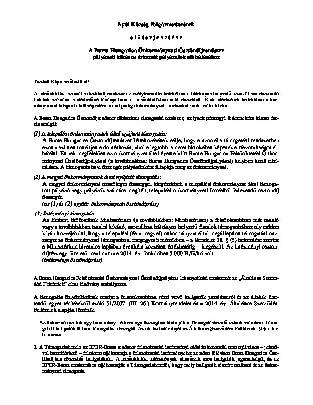 Bursa - előterjesztés - döntésre