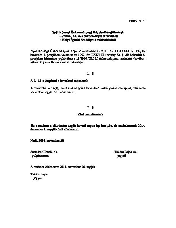 Szabályozási Terv módosítása