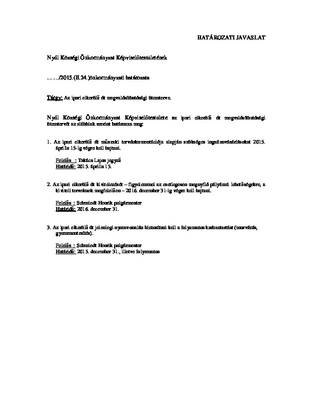 Ipari elkerülő út - határozati javaslat