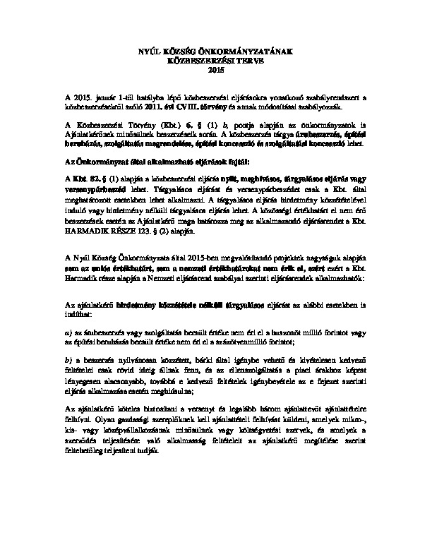Közbeszerzési terv 2015