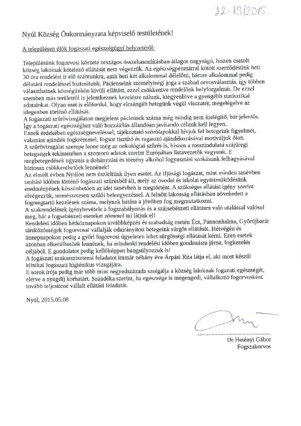 Dr. Hetényi Gábor fogorvos beszámolója
