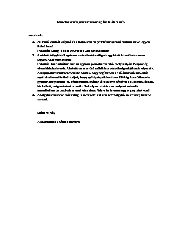 Incső utca névváltozási javaslatok térkép