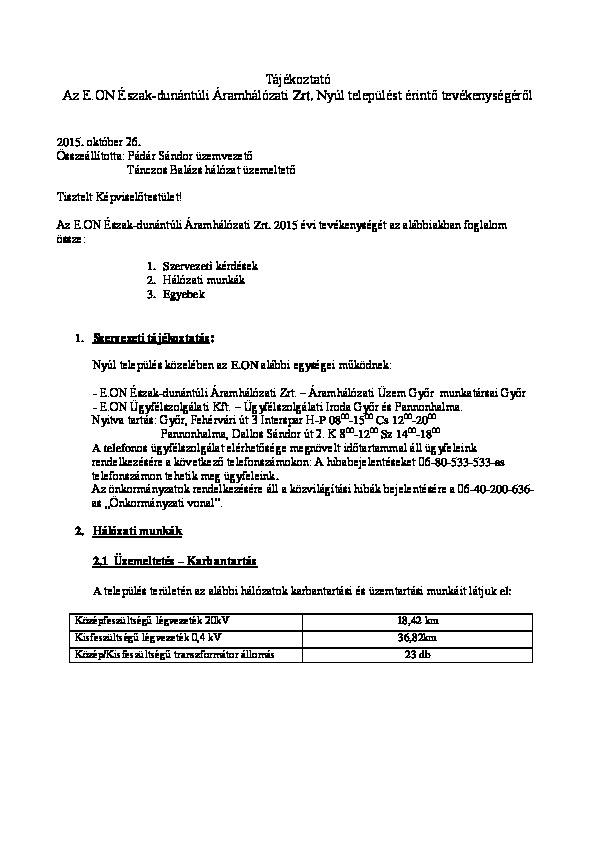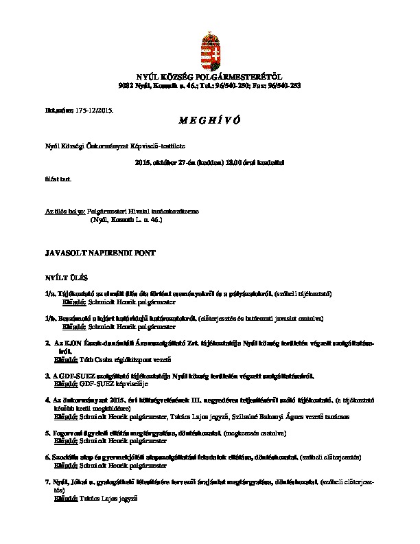 Előterjesztések 2015-10-27