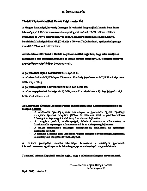 Óvoda - előterjesztés műfüves grundpálya