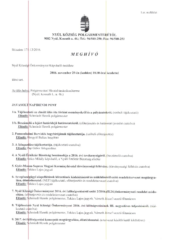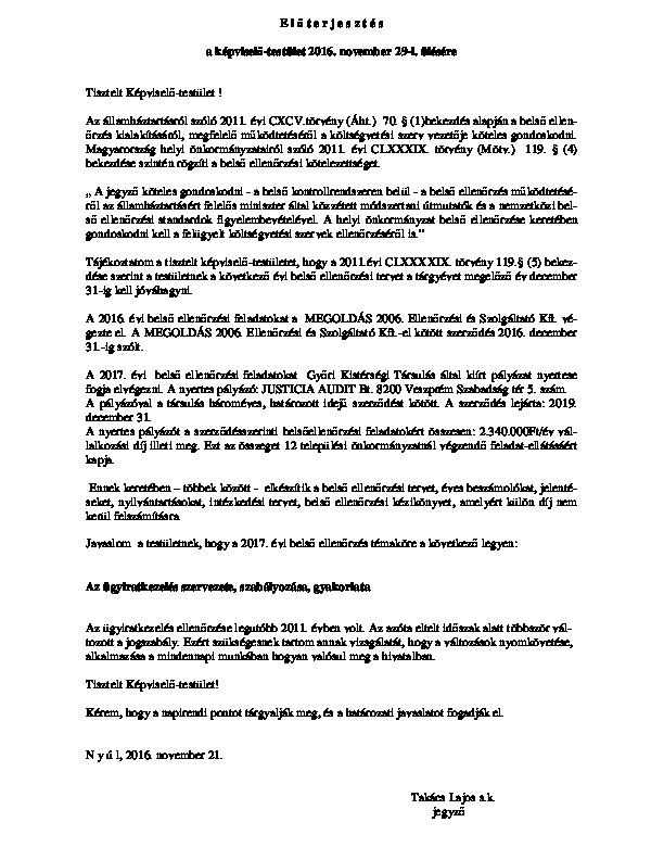 Előterjesztések 2016-11-29