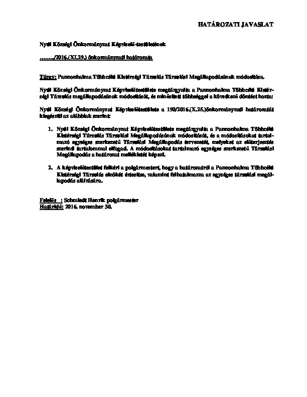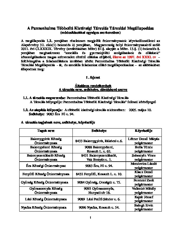 Ptkt társulási megállapodás módosítás - társulási megállapodás egységes szerkezetben