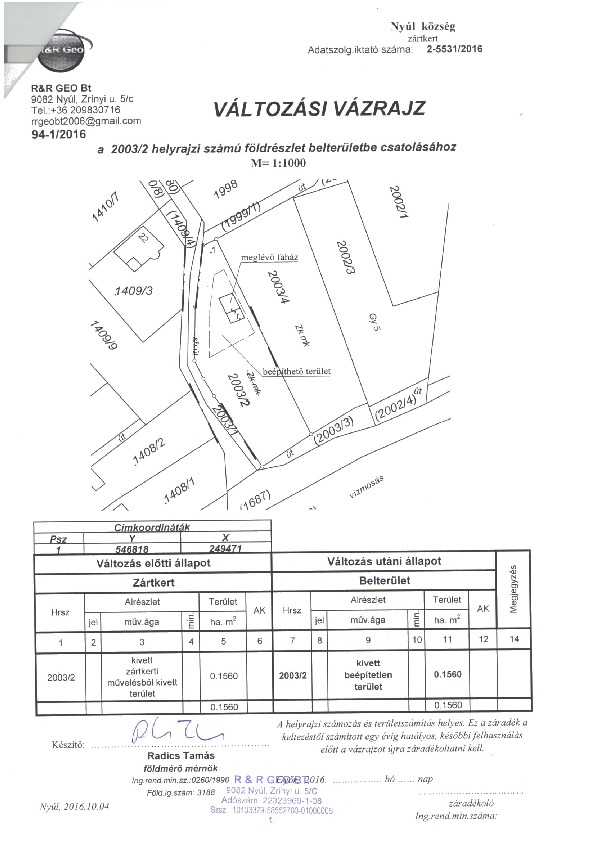 Mezőfi István 2003/2 Hrsz belterületbe vonás - változási vázrajz és térképkivonat