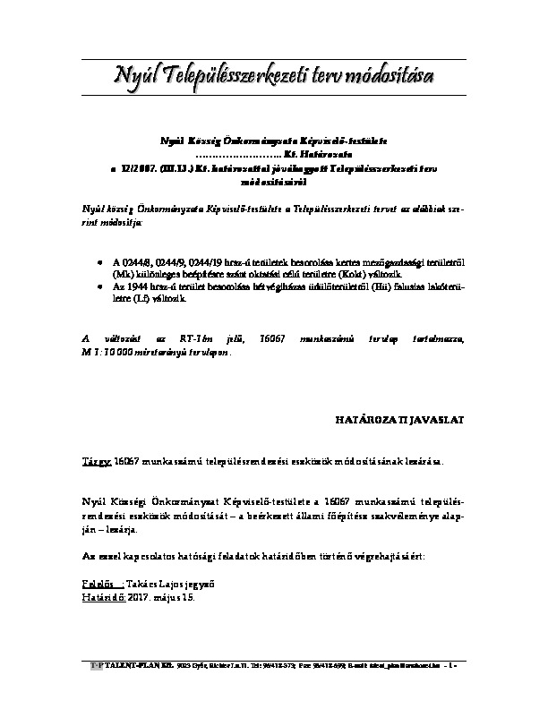 A telep.fejl., telep.rend. és telep.kép-érvényesítéssel összef. partnerségi egyezt. helyi szab.