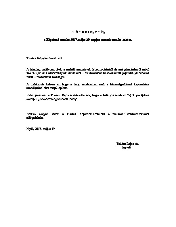 Előterjesztések 2017-05-30