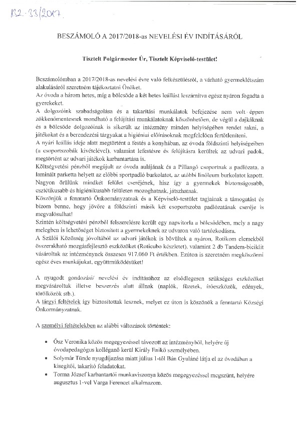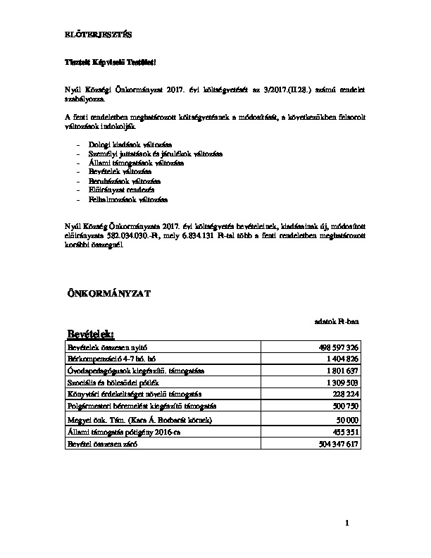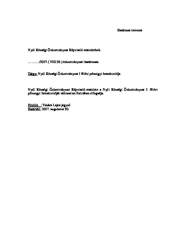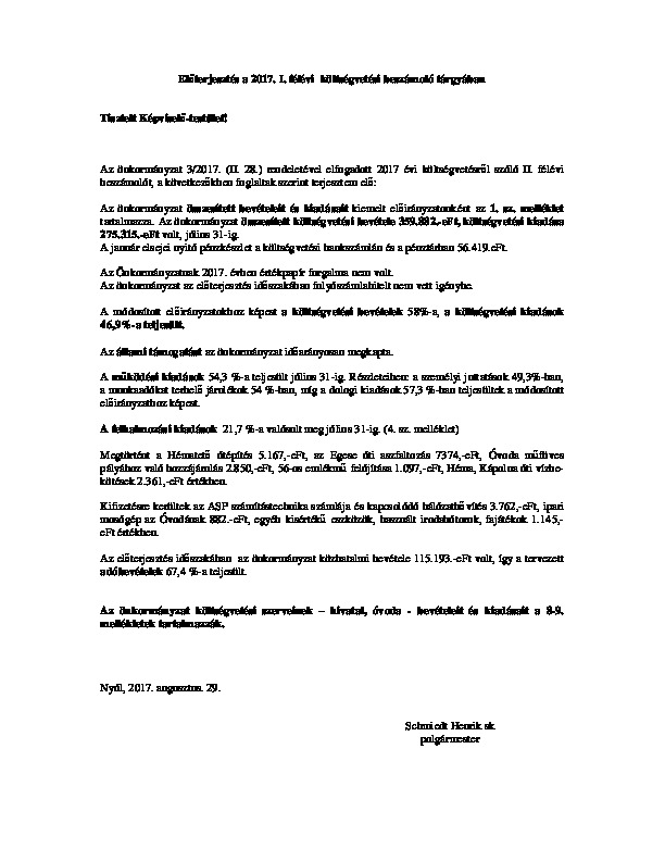 Önkormányzat 2017. évi költségvetés I. félévi beszámoló - határozati javaslat