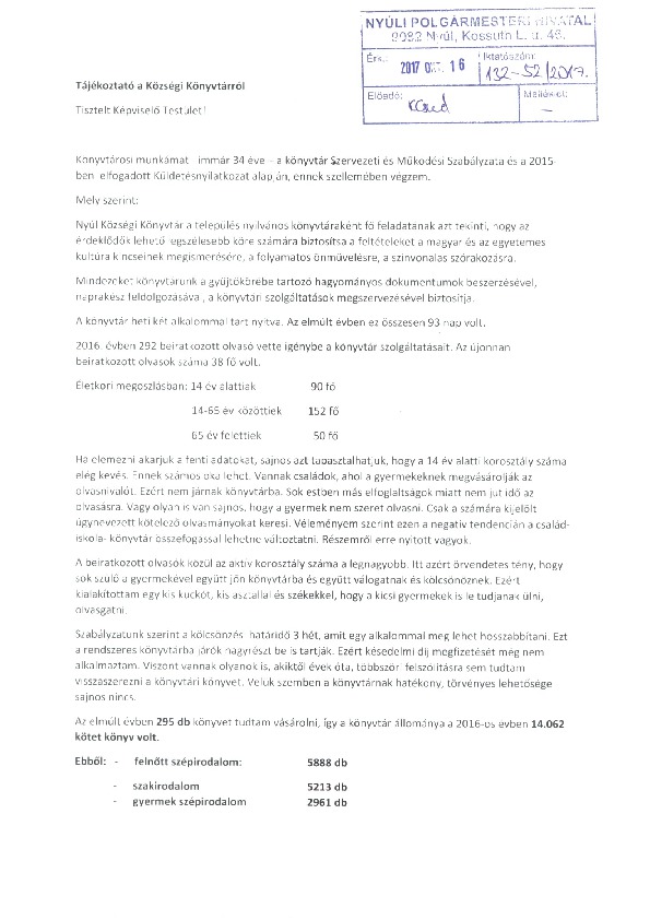 Könyvtár - tájékoztató