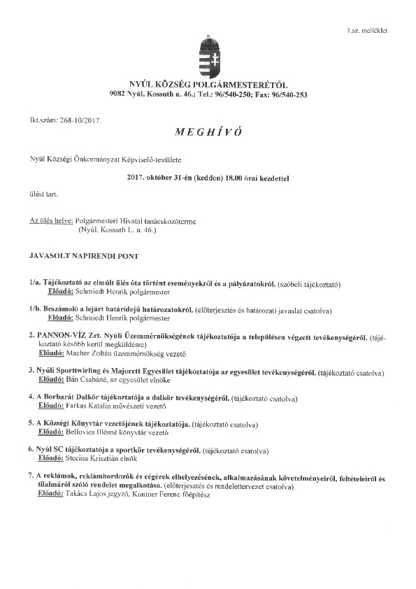 Előterjesztések 2017-10-31