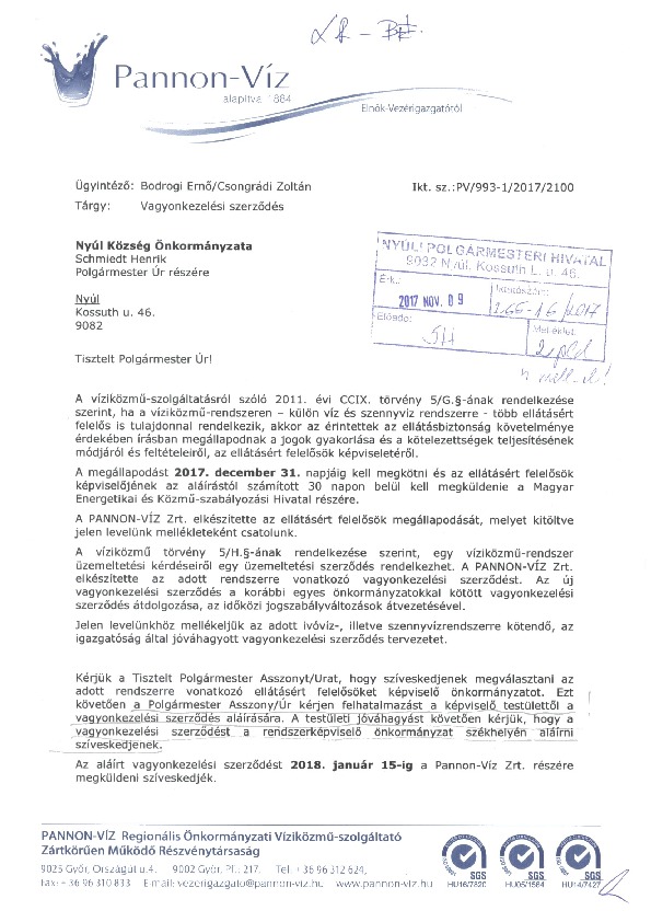 Pannon-Víz - Vagyonkezelési Szerződés 2017