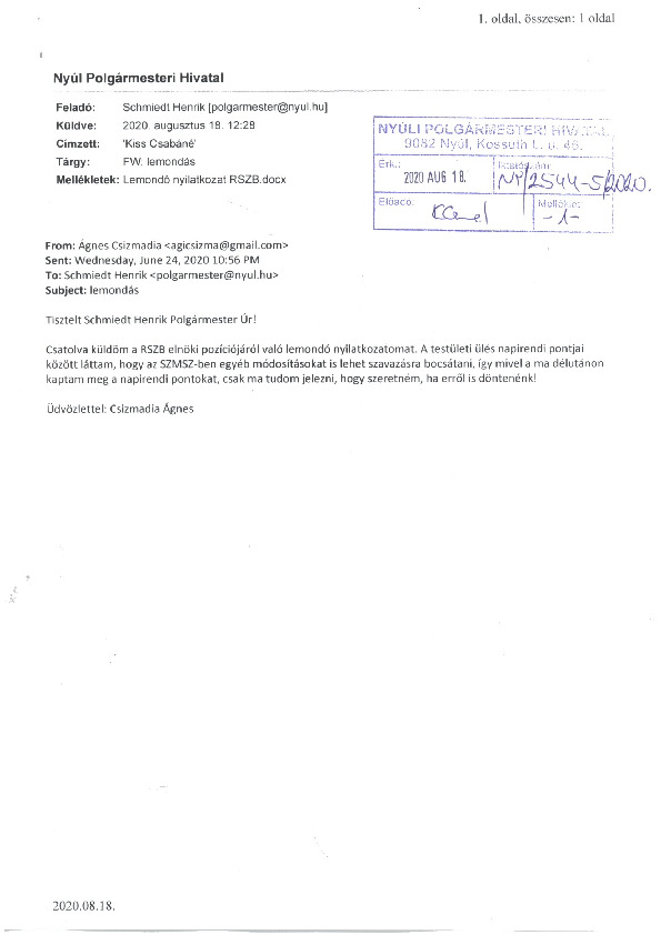 Előterjesztések 2020-08-25