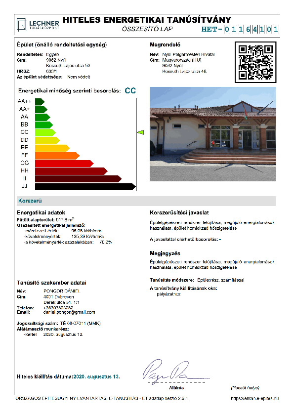 Önkormányzati étkeztetési fejlesztések pályázat - Energetikai tanúsítvány
