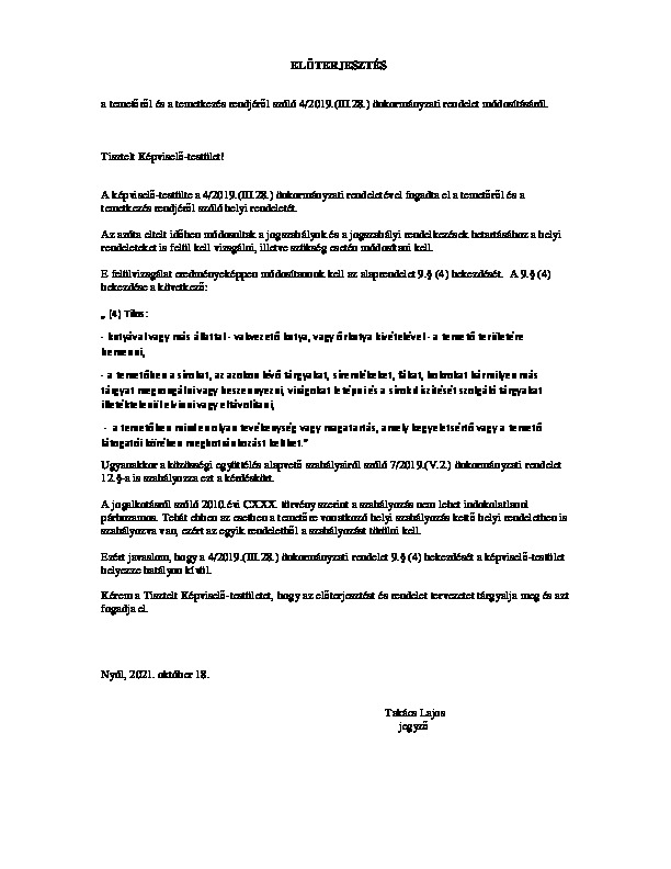 Temetőről és a temetkezés rendjéről szóló rendelet módosítása - 2021. október