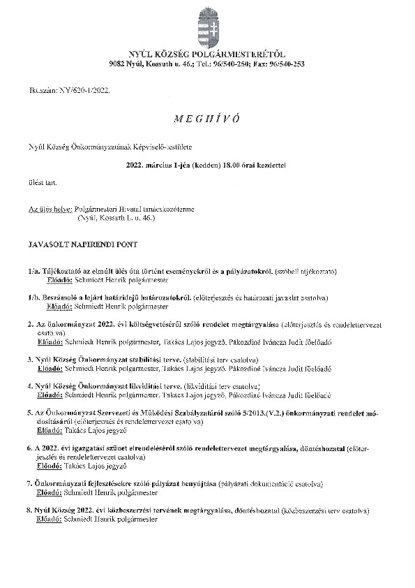Előterjesztések 2022-03-01