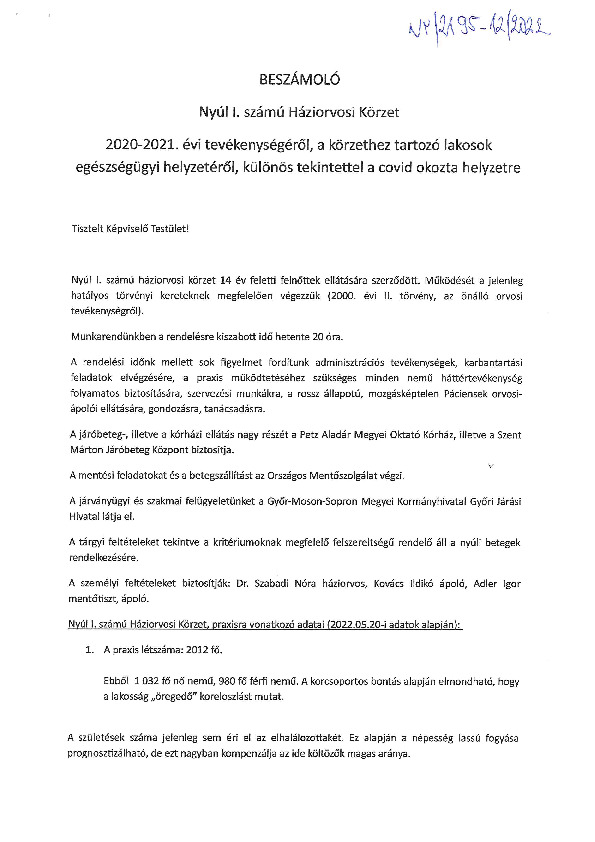 Dr. Begya László háziorvos tájékoztatója