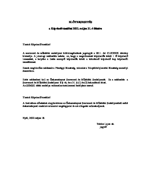 Előterjesztések 2022-05-31