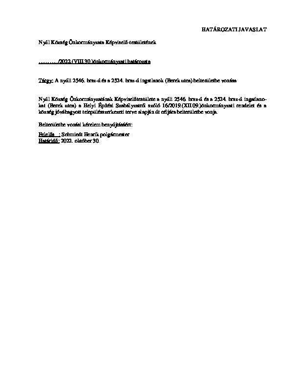 2497 és 2495 hrsz ingatlan belterületbe vonása