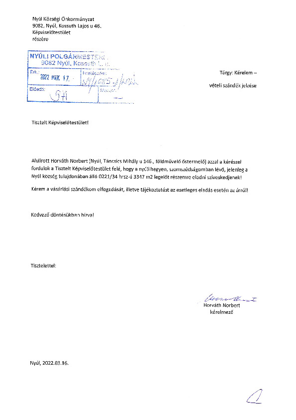 0263/31 és 0263/35 hrsz ingatlanok megvásárlása